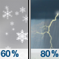 Temperature: 48°F Wind Speed: 7 to 10 mph Wind Direction: SSW Forecast: Rain likely before 10am, then snow likely and patchy fog between 10am and 11am, then showers and thunderstorms likely between 11am and 1pm, then rain. Mostly cloudy. High near 48, with temperatures falling to around 45 in the afternoon. South southwest wind 7 to 10 mph. Chance of precipitation is 80%. New rainfall amounts less than a tenth of an inch possible. |