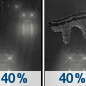 Temperature: 25°F Wind Speed: 6 mph Wind Direction: N Forecast: A chance of snow. Mostly cloudy, with a low around 25. Chance of precipitation is 30%. |