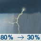 Forecast: A chance of rain before 7pm. Mostly cloudy, with a low around 38. Chance of precipitation is 30%.