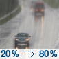 Temperature: 57°F Wind Speed: 6 to 14 mph Wind Direction: S Forecast: Rain after 7am. Mostly cloudy, with a high near 57. Chance of precipitation is 80%. |