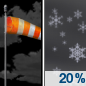 Forecast: A chance of rain before 8pm, then a chance of rain and snow between 8pm and 11pm. Mostly clear, with a low around 23. West northwest wind 20 to 30 mph, with gusts as high as 45 mph. Chance of precipitation is 30%.