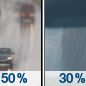 Temperature: 46°F Wind Speed: 12 mph Wind Direction: W Forecast: A chance of rain. Cloudy, with a low around 46. Chance of precipitation is 30%. |