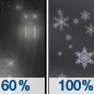 Temperature: 28°F Wind Speed: 10 to 14 mph Wind Direction: SW Forecast: Rain before 4am, then snow likely between 4am and 5am, then a chance of rain. Cloudy. Low around 28, with temperatures rising to around 41 overnight. Southwest wind 10 to 14 mph, with gusts as high as 29 mph. Chance of precipitation is 100%. Little or no snow accumulation expected. |