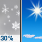 Temperature: 39°F Wind Speed: 6 mph Wind Direction: NW Forecast: A chance of rain and snow showers before 7am. Sunny, with a high near 39. Chance of precipitation is 30%. New snow accumulation of less than half an inch possible. |