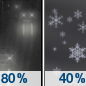Temperature: 31°F Wind Speed: 7 to 10 mph Wind Direction: SW Forecast: Rain before 4am, then a slight chance of rain and snow. Mostly cloudy, with a low around 31. Southwest wind 7 to 10 mph. Chance of precipitation is 80%. New rainfall amounts less than a tenth of an inch possible. |