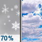 Temperature: 32°F Wind Speed: 6 to 9 mph Wind Direction: SW Forecast: A slight chance of snow. Mostly cloudy, with a high near 32. Southwest wind 6 to 9 mph, with gusts as high as 18 mph. Chance of precipitation is 20%. |