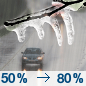 Temperature: 38°F Wind Speed: 6 mph Wind Direction: SE Forecast: Rain and a slight chance of freezing rain. Cloudy, with a high near 38. Chance of precipitation is 80%. |