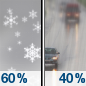Temperature: 37°F Wind Speed: 6 to 10 mph Wind Direction: SW Forecast: Snow likely. Mostly cloudy, with a high near 37. Chance of precipitation is 60%. |