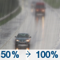 Temperature: 53°F Wind Speed: 13 to 17 mph Wind Direction: S Forecast: Rain after 7am. Mostly cloudy, with a high near 53. South wind 13 to 17 mph, with gusts as high as 32 mph. Chance of precipitation is 100%. New rainfall amounts between a quarter and half of an inch possible. |
