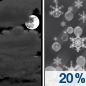 Temperature: 28°F Wind Speed: 15 mph Wind Direction: S Forecast: A slight chance of sleet between midnight and 1am, then a slight chance of sleet and a slight chance of freezing rain between 1am and 3am. Mostly cloudy, with a low around 28. South wind around 15 mph. Chance of precipitation is 20%. |
