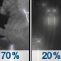 Temperature: 42°F Wind Speed: 5 to 10 mph Wind Direction: SW Forecast: Showers and thunderstorms likely before midnight, then a slight chance of rain between midnight and 3am. Mostly cloudy, with a low around 42. Southwest wind 5 to 10 mph, with gusts as high as 25 mph. Chance of precipitation is 70%. New rainfall amounts less than a tenth of an inch possible. |