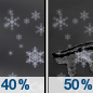 Temperature: 28°F Wind Speed: 6 to 9 mph Wind Direction: W Forecast: A chance of snow before 7pm, then a chance of rain and snow showers between 7pm and 4am. Mostly cloudy, with a low around 28. West wind 6 to 9 mph, with gusts as high as 25 mph. Chance of precipitation is 40%. |