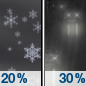 Temperature: 29°F Wind Speed: 8 mph Wind Direction: SW Forecast: A slight chance of rain between 8pm and 10pm, then a slight chance of snow between 10pm and 11pm, then a chance of rain. Mostly cloudy, with a low around 29. Southwest wind around 8 mph. Chance of precipitation is 30%. |
