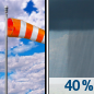 Temperature: 41°F Wind Speed: 18 mph Wind Direction: SW Forecast: A chance of rain before 1pm. Mostly cloudy, with a high near 41. Chance of precipitation is 30%. |