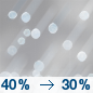 Temperature: 6°F Wind Speed: 13 mph Wind Direction: S Forecast: A chance of snow. Cloudy, with a low around 6. South wind around 13 mph. Chance of precipitation is 40%. |