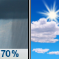 Temperature: 56°F Wind Speed: 6 to 13 mph Wind Direction: NW Forecast: Rain showers likely before 7am. Mostly sunny, with a high near 56. Chance of precipitation is 70%. |