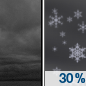 Temperature: 30°F Wind Speed: 10 mph Wind Direction: SW Forecast: A slight chance of snow between midnight and 2am, then a chance of rain. Cloudy, with a low around 30. Southwest wind around 10 mph, with gusts as high as 21 mph. Chance of precipitation is 30%. |