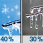 Temperature: 30°F Wind Speed: 10 to 15 mph Wind Direction: W Forecast: A chance of rain and snow before 7am, then a chance of freezing rain between 7am and 1pm. Mostly cloudy, with a high near 30. Chance of precipitation is 40%. |