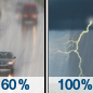 Temperature: 20°F Wind Speed: 13 to 20 mph Wind Direction: W Forecast: Rain likely and a slight chance of thunderstorms before 7pm, then scattered rain showers between 7pm and 10pm, then scattered rain and snow showers. Mostly cloudy, with a low around 20. West wind 13 to 20 mph, with gusts as high as 30 mph. Chance of precipitation is 70%. New rainfall amounts between a half and three quarters of an inch possible. |