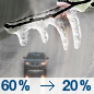 Temperature: 37°F Wind Speed: 7 mph Wind Direction: E Forecast: Freezing rain likely and rain likely before 1pm. Cloudy, with a high near 37. Chance of precipitation is 60%. |