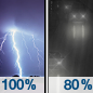 Temperature: 51°F Wind Speed: 10 to 23 mph Wind Direction: SSE Forecast: Showers and thunderstorms before 10pm, then rain likely between 10pm and 1am, then showers and thunderstorms. Cloudy. Low around 51, with temperatures rising to around 53 overnight. South southeast wind 10 to 23 mph, with gusts as high as 44 mph. Chance of precipitation is 100%. New rainfall amounts between three quarters and one inch possible. |