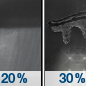 Temperature: 34°F Wind Speed: 7 mph Wind Direction: WSW Forecast: A chance of rain showers before 1am. Mostly cloudy, with a low around 34. |