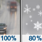 Temperature: 31°F Wind Speed: 3 to 7 mph Wind Direction: SW Forecast: A chance of snow after 7am. Partly sunny, with a high near 31. Southwest wind 3 to 7 mph. Chance of precipitation is 30%. |