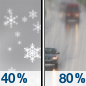 Temperature: 40°F Wind Speed: 0 to 5 mph Wind Direction: SE Forecast: A slight chance of snow before 7am, then rain. Cloudy, with a high near 40. Chance of precipitation is 80%. |