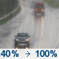 Temperature: 32°F Wind Speed: 9 mph Wind Direction: S Forecast: A chance of rain after 7pm. Mostly cloudy, with a low around 32. |