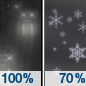 Temperature: 26°F Wind Speed: 6 mph Wind Direction: NE Forecast: A slight chance of freezing rain after 7pm. Mostly cloudy, with a low around 26. |